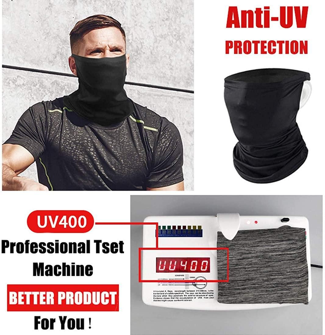 • : Ear Loops Design Neck Gaiters; Easy to Put On and It is not Easy to Slide Down Like Those Tube Face Bandana. Makes You Feel More Comfortable when You are in Outdoor Activity. These Black/White/Grey Neck Gaiters Pass Professional Machine Test; UV400 Protection Standard; Can Withstand 99.99% of Ultraviolet Rays; Protects You from Harmful Sun UV and Guard You against Wind; Dust; Bugs and Sand.