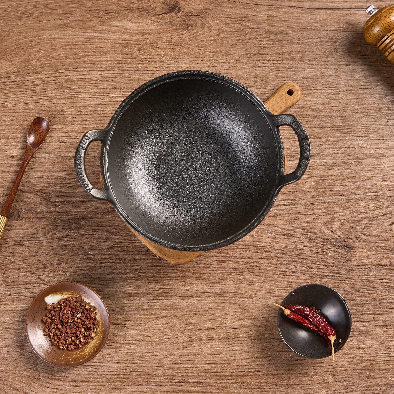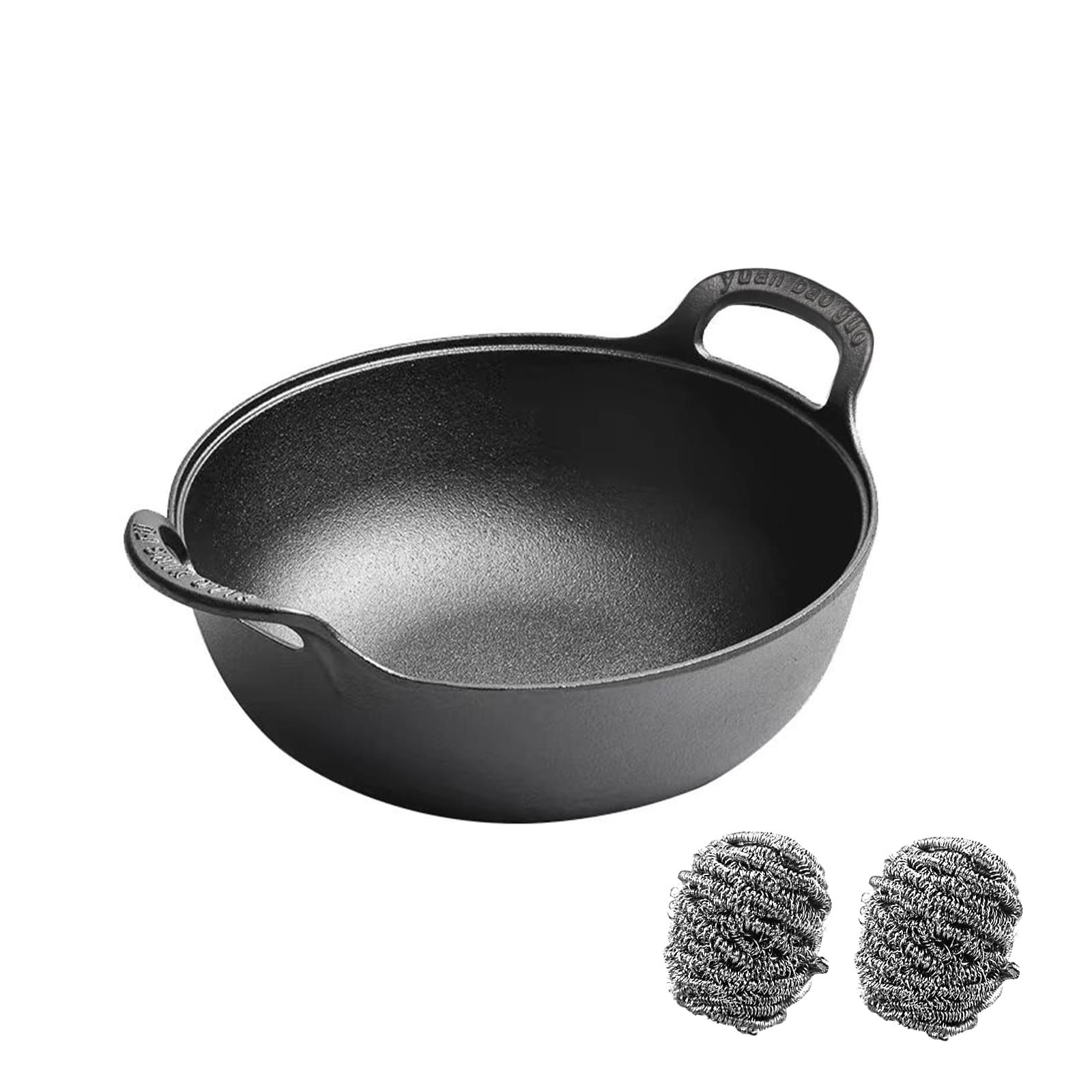 Healthy Cooking: The cast iron wok is made of high grade pure iron, with dual handles. It is an uncoated iron pot and can be used with confidence.