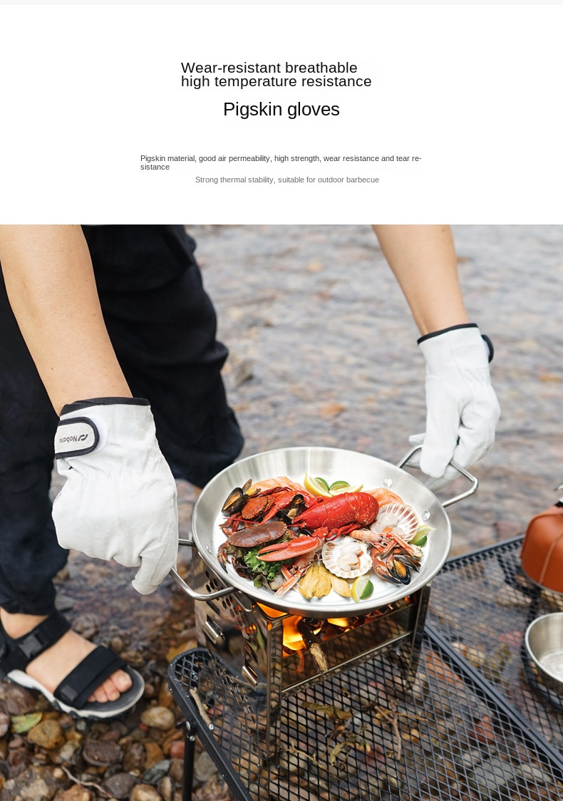 Outdoor picnic BBQ gloves camping fire barbecue cowhide heat insulation thickening wear pigskin breathable labor protection gloves